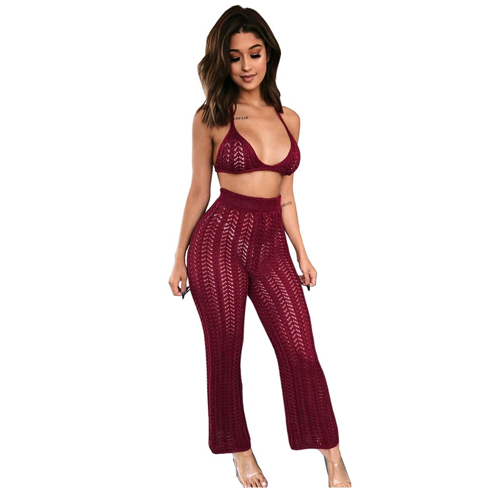 Sexy Women Two Piece Pants Bikini Cover Up Crochet Tops And Pants Bikini Swimsuit Solid Beach Bathing Suit Cover Ups From Luote 21 1 Dhgate Com